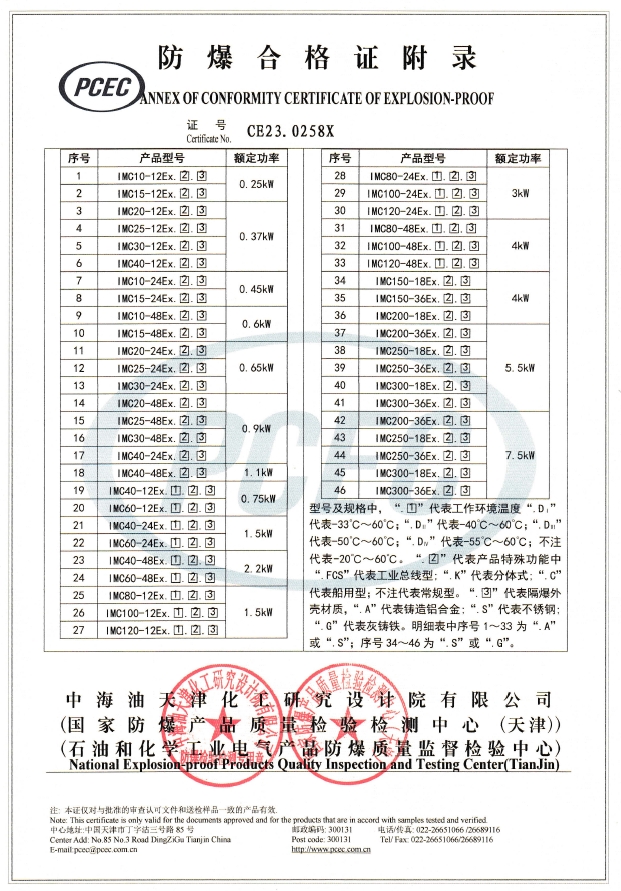IMC系列技術參數(shù)表