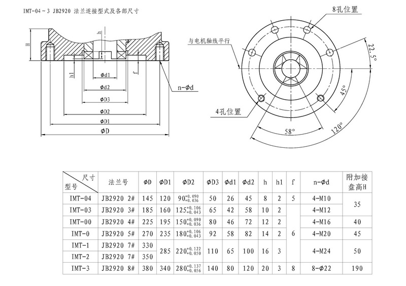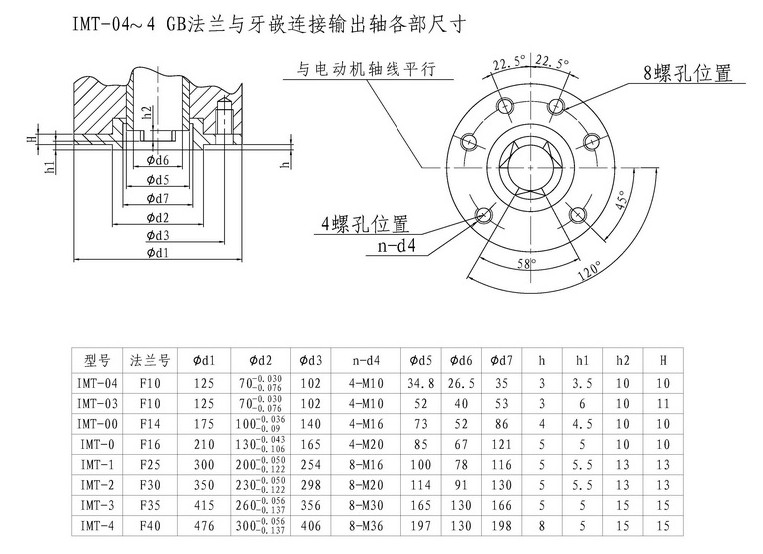IMT-04~4 GB法蘭與牙嵌連接輸出軸各部尺寸
