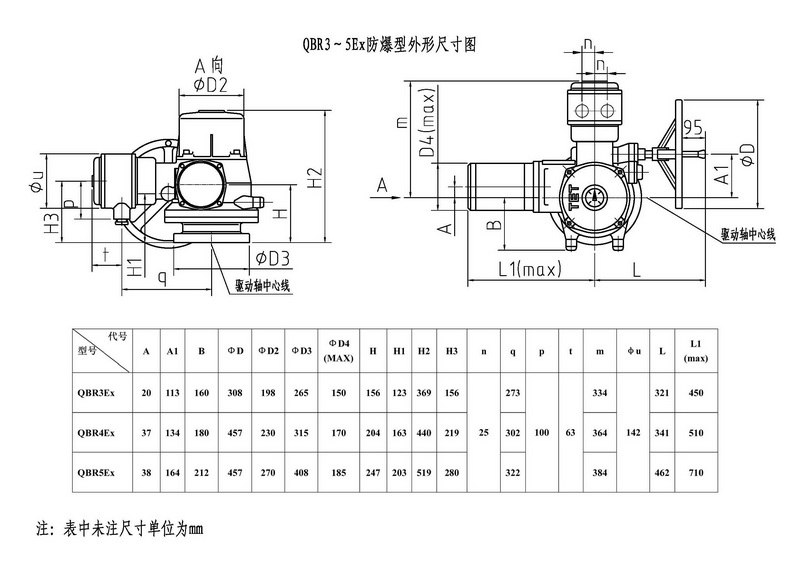 QBR3~QBR5是我公司研制的部分回轉(zhuǎn)閥門電動裝置,控制轉(zhuǎn)矩范圍:900N.m~12000N.m。該電動裝置可與球閥﹑蝶閥等閥瓣做90°回轉(zhuǎn)的閥門組合成電動閥門,其功能是控制閥門的啟閉。該電動裝置能夠進行單機或多機室內(nèi)控制遠(yuǎn)距離控制電動操作和現(xiàn)場手動或電動操作,可廣泛地應(yīng)用在具有管道閥門的工業(yè)系統(tǒng)。該產(chǎn)品的防護等級為IP67,隔爆型產(chǎn)品(型號中有Ex)的隔爆等級 為dⅡBT4。