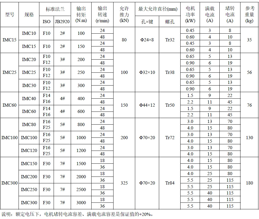 IMC標(biāo)準(zhǔn)技術(shù)參數(shù)表